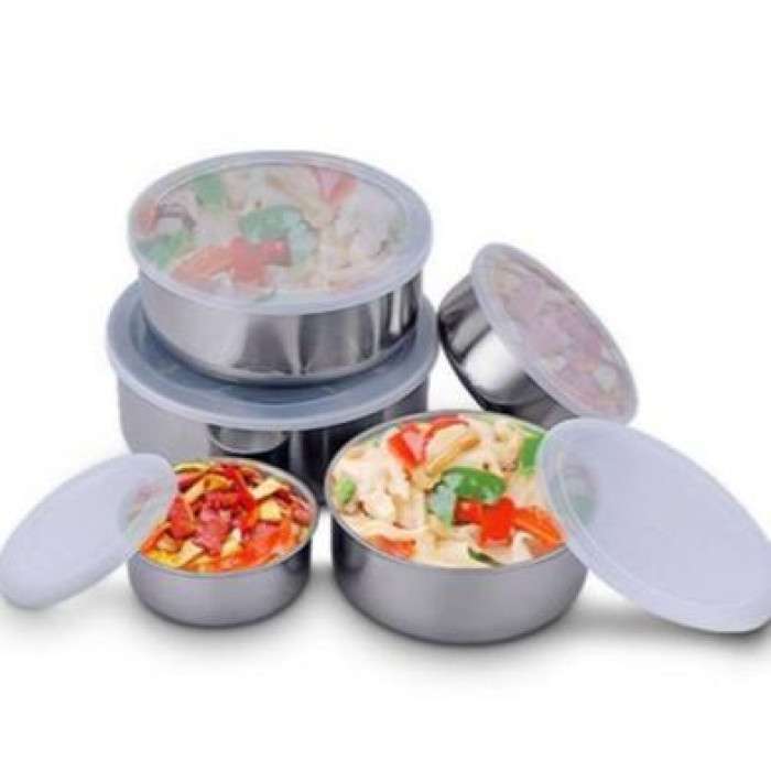 • ঢাকনা সহ 5 পিসি স্টেইনলেস স্টিলের ফ্রেশ বক্স • টেকসই অ্যালুমিনিয়াম উপাদান • রান্নাঘর স্টোরেএবং লাঞ্চের জন্য আদর্শ • বহুমুখী এবং সতেজতা রক্ষা করে • যেতে যেতে খাবারের জন্য উপযুক্ত
